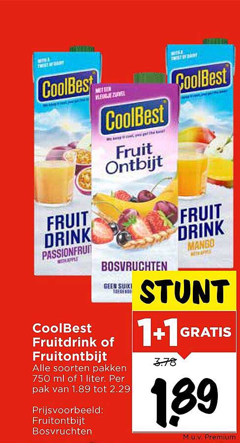 Ben je op zoek naar een verfrissende manier om je dag te beginnen? Kijk dan eens hier! De CoolBest Fruitsap en Fruitontbijt zijn nu tijdelijk beschikbaar met een geweldige aanbieding van 1+1 gratis. Dit betekent dat je niet alleen geniet van een heerlijke fruitsap, maar ook een tweede pak helemaal gratis krijgt! Perfect voor die drukke ochtenden of als verfrissing gedurende de dag.