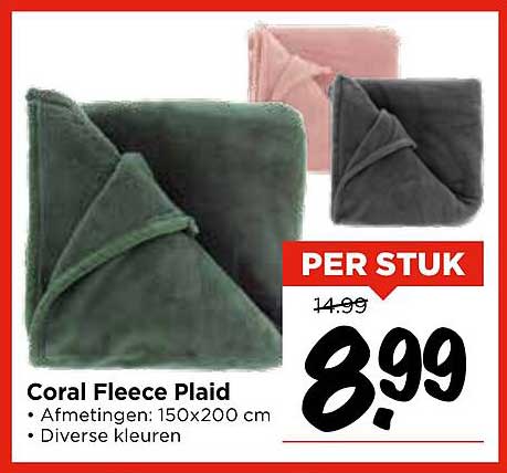 Bekijk de Coral Fleece Plaid aanbieding bij Vomar! Deze fantastische aanbieding is nu beschikbaar in de nieuwste Vomar folder. Profiteer van deze kans en bespaar flink op je aankoop.