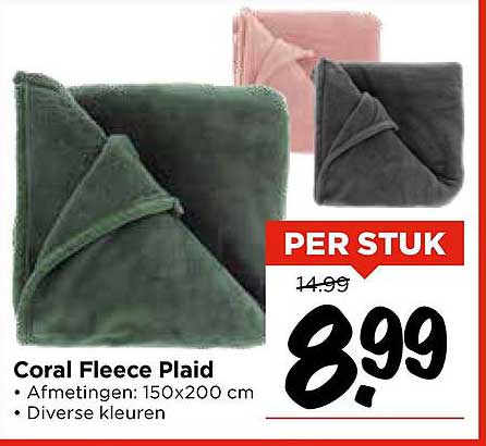 Bekijk de Coral Fleece Plaid aanbieding bij Vomar! Deze fantastische aanbieding is nu beschikbaar in de nieuwste Vomar folder. Profiteer van deze kans en bespaar flink op je aankoop.