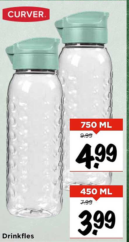 Met een prijs van slechts €4,99 voor de 750 ml fles (normaal €9,99) en €3,99 voor de 450 ml fles (normaal €7,99), krijg je een geweldige korting! Dit maakt het de perfecte gelegenheid om deze handige drinkflessen aan te schaffen voor jou en je vrienden.