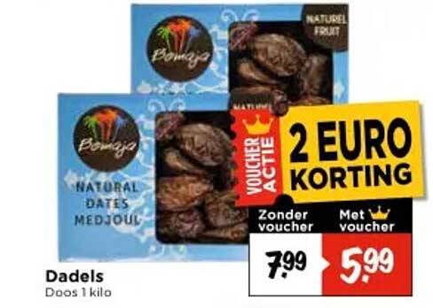 Normaal gesproken kosten deze heerlijke dadels €7,99, maar met de huidige voucheractie profiteer je van een korting van €2, waardoor je ze nu voor slechts €5,99 kunt kopen! Deze spectaculaire deal maakt het mogelijk om gezond te snacken zonder je portemonnee te zwaar te belasten. Neem vooral een kijkje in je lokale Vomar en mis deze aanbieding niet, want het is een buitenkans die je niet wilt laten liggen.