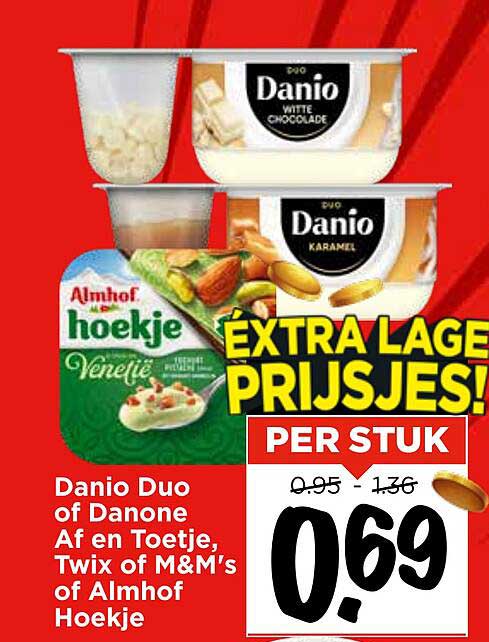 Ontdek de Danio Duo Of Danone Af En Toetje, Twix Of M&M's Van Almhof Hoekje