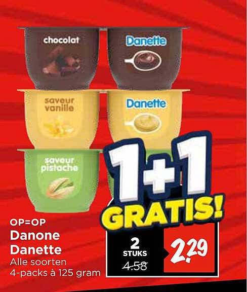 Normaal gesproken betaal je voor twee packs Danone Danette €4,58, maar met deze actie krijg je ze voor slechts €2,29! Dit is een besparing van bijna 50%! Bij zo'n scherpe prijs is het moeilijk om niet toe te slaan. Zorg ervoor dat je snel bent, want deze aanbieding is slechts tijdelijk beschikbaar.