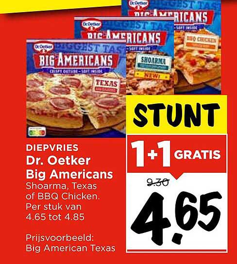 Bekijk de Dr. Oetker Big Americans aanbieding bij Vomar! Deze fantastische aanbieding is nu beschikbaar in de nieuwste Vomar folder. Profiteer van deze kans en bespaar flink op je aankoop.