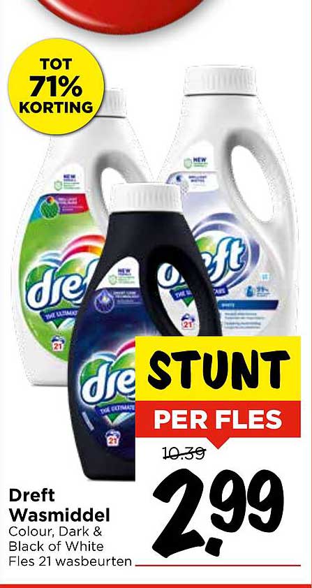 Ontdek de ultieme waservaring met Dreft Wasmiddel. Dit krachtige wasmiddel is speciaal ontwikkeld om je kleding stralend schoon te maken, ongeacht de kleur of stof. Of je nu lichte of donkere kleding wast, met Dreft ben je verzekerd van een perfecte wasbeurt. Deze aanbieding is niet alleen aantrekkelijk, maar ook een kans om te besparen op je huishoudelijke aankopen.