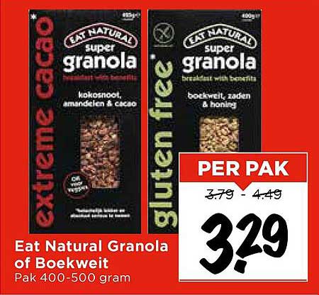 Bekijk nu de Eat Natural Granola of Boekweit aanbieding in de Vomar folder. Deze aanbieding is geldig van 06-08-2025 tot en met 09-08-2025.