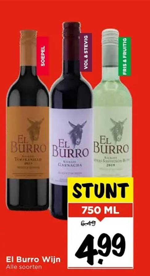 Maak je avond compleet met de heerlijke El Burro Wijn, verkrijgbaar in verschillende soorten die perfect passen bij elke gelegenheid. Of je nu een gezellige borrel hebt met vrienden of een romantisch diner, deze wijnen zijn een uitstekende keuze. Met deze aanbieding van Vomar kun je genieten van een kwaliteitswijn tegen een scherpe prijs.