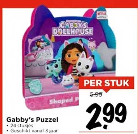 De reguliere prijs voor Gabby's Puzzel is €5,99, maar met deze aanbieding kun je de puzzel nu voor slechts €2,99 bemachtigen! Dat is een stevige korting van 50%! Een perfecte kans om een leuk cadeau te geven of je eigen collectie uit te breiden zonder de bank te breken!