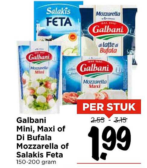 Bekijk de Galbani Mini, Maxi Of Di Bufala Mozzarella Of Salakis Feta aanbieding bij Vomar! Deze fantastische aanbieding is nu beschikbaar in de nieuwste Vomar folder. Profiteer van deze kans en bespaar flink op je aankoop.