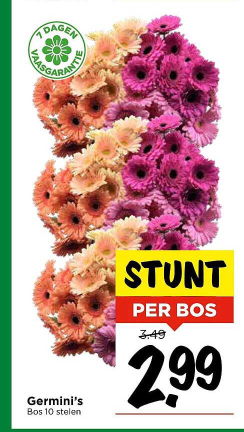 Bekijk nu de Germini's Bos 10 stelen aanbieding in de Vomar folder. Deze aanbieding is geldig van 30-07-2025 tot en met 02-08-2025.