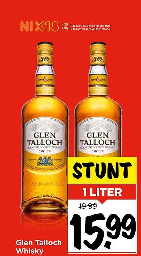 Ben je op zoek naar een heerlijke whisky voor een aantrekkelijke prijs? Dan is deze aanbieding van Glen Talloch Whisky precies wat je nodig hebt! Deze schotse whisky is niet alleen geliefd om zijn smaak, maar ook om zijn uitstekende prijs-kwaliteitverhouding. Met een korting van bijna 4 euro, is dit het perfecte moment om je favoriete drank in te slaan. Deze aanbieding is geldig van 30 juli tot en met 2 augustus 2025, dus mis het niet!
