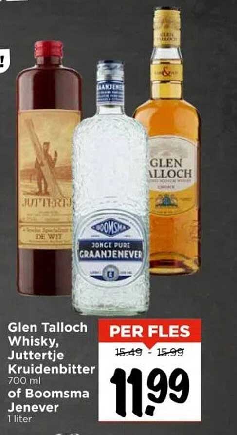 Bekijk nu de Glen Talloch Whisky, Juttertje Kruidenbitter 700 ml of Boomsma Jenever aanbieding in de Vomar folder. Deze aanbieding is geldig van 25-09-2025 tot en met 27-09-2025.
