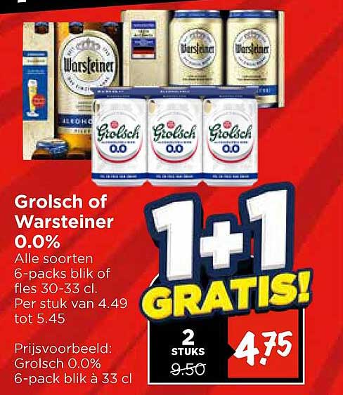 Bekijk nu de Grolsch of Warsteiner 0.0% aanbieding in de Vomar folder. Deze aanbieding is geldig van 09-04-2025 tot en met 12-04-2025.