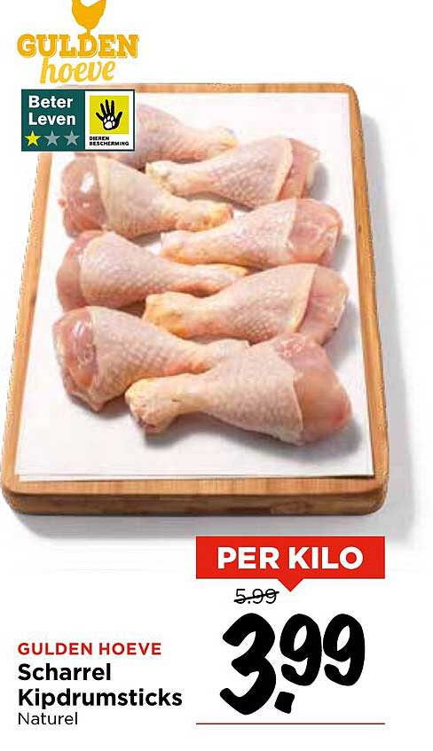 Wil je direct op de hoogte zijn zodra de Gulden Hoeve Scharrel Kipdrumsticks in de aanbieding is? Meld je aan voor onze aanbiedingen-alert. Zo krijg je een melding zodra het product tegen een voordelige prijs beschikbaar is.