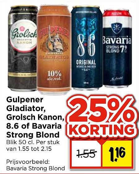 Gulpener Gladiator, Grolsch Kanon, 8.6 Of Bavaria Strong Blond aanbieding bij Vomar