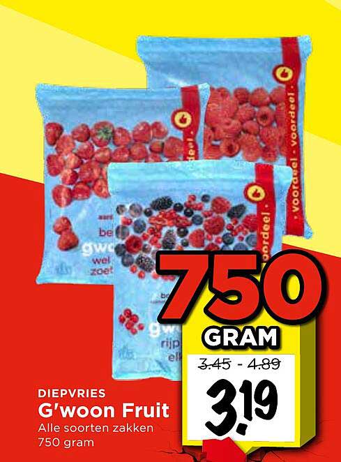 Bekijk de G'woon Fruit aanbieding bij Vomar! Deze fantastische aanbieding is nu beschikbaar in de nieuwste Vomar folder. Profiteer van deze kans en bespaar flink op je aankoop.