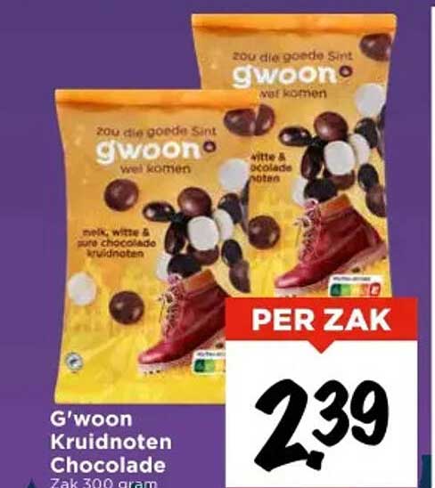 Bekijk nu de G'woon Kruidnoten Chocolade aanbieding in de Vomar folder. Deze aanbieding is geldig van 13-11-2025 tot en met 15-11-2025.