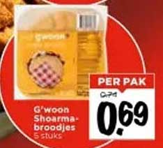 G'woon Shoarma-Broodjes aanbieding bij Vomar