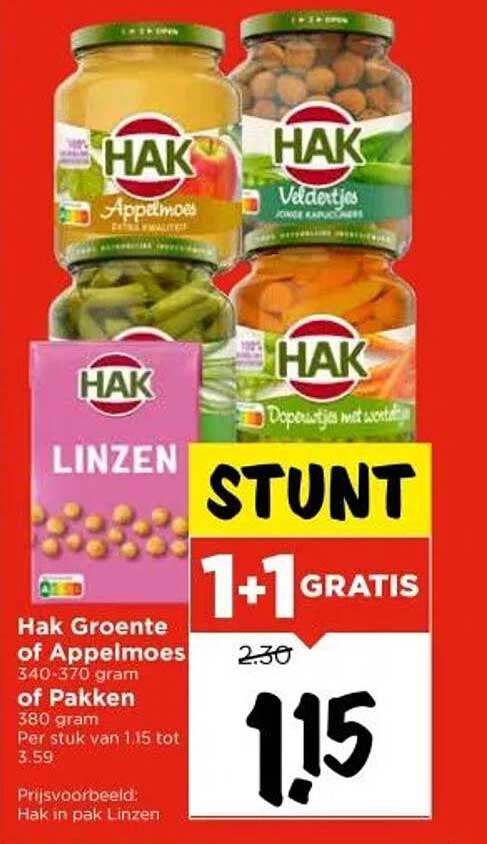 Ben je op zoek naar een uitstekende aanbieding voor groente en appelmoes? Dan zit je hier goed! Van 23 oktober tot en met 25 oktober kun je profiteren van een geweldige actie bij Vomar, waar je een aanbieding vindt die je niet wilt missen. Met deze aanbieding kun je de gezonde smaken van Hak in huis halen voor een zeer aantrekkelijke prijs. Of je nu van appelmoes houdt bij je avondeten of van groente als bijgerecht, met deze deal is er voor ieder wat wils.