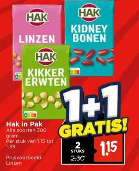 Heerlijk genieten van gezonde peulvruchten met de Hak in Pak aanbieding! Van 4 tot 6 september 2025 krijg je één pakket gratis bij aankoop van twee. Perfect voor de echte liefhebbers van linzen, kikkererwten en kidneybonen. Dit is niet alleen een geweldige manier om te besparen, maar ook een kans om je maaltijden te verrijken met voedzame ingrediënten!