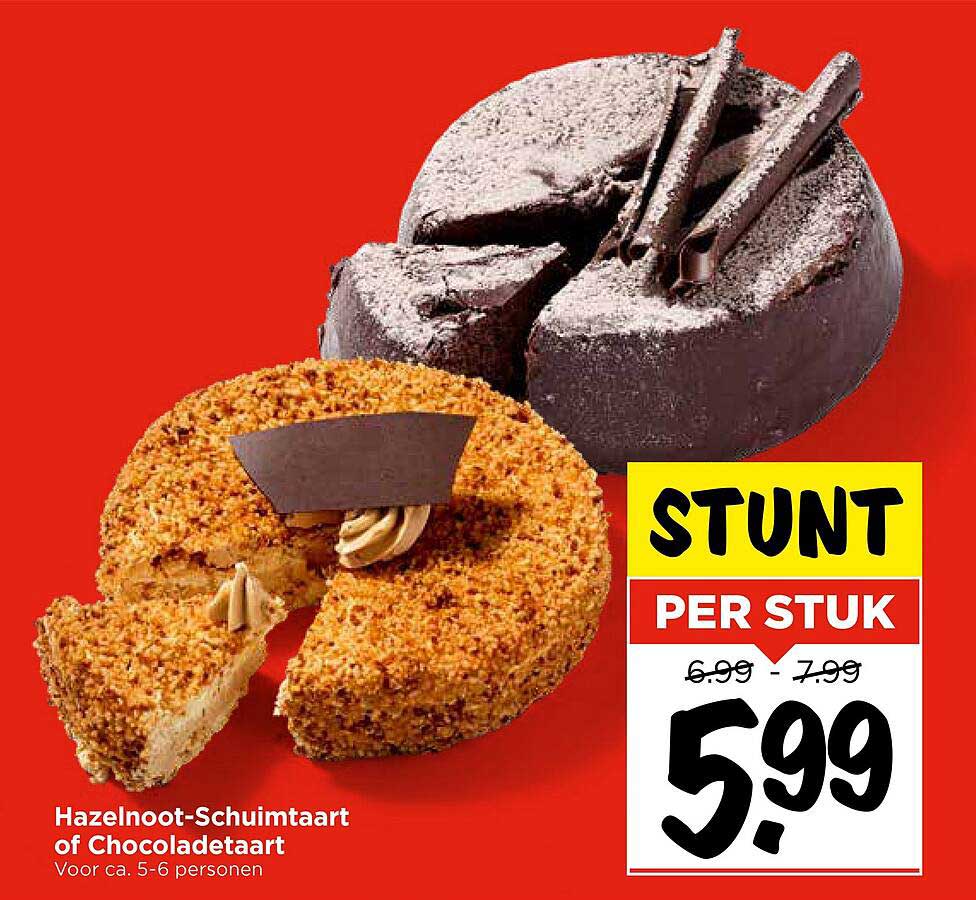 Bekijk de Hazelnoot-Schuimtaart Of Chocoladetaart aanbieding bij Vomar! Deze fantastische aanbieding is nu beschikbaar in de nieuwste Vomar folder. Profiteer van deze kans en bespaar flink op je aankoop.