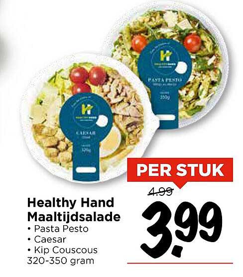 Ontdek de geweldige Healthy Hand Maaltijdsalade aanbieding in de nieuwste Vomar folder. Naast deze aanbieding vind je nog veel meer aantrekkelijke kortingen. Je kunt de Healthy Hand Maaltijdsalade eenvoudig online bestellen via de Vomar website of kopen in een winkel bij jou in de buurt.