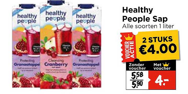 Heb je behoefte aan een verfrissende en gezonde drank? Met de Healthy People Sap aanbieding haal je geen gewoon sap in huis, maar een echte smaakexplosie vol vitaminen en mineralen. De aanbieding van 2 stuks voor slechts €4,00 maakt het nog aantrekkelijker. Van 13 april tot en met 19 april kun je volop genieten van deze heerlijke sappen!