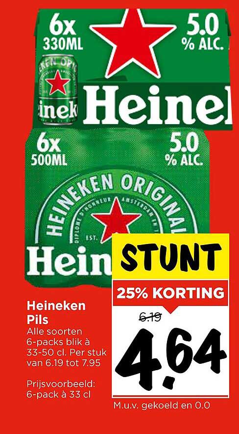 Ben je op zoek naar een verfrissende dorstlesser voor een gezellige avond met vrienden of een feestelijke gelegenheid? Dan is deze aanbieding van Heineken Pils absoluut iets voor jou! Met een geweldige korting van 25% kun je nu genieten van de iconische smaak van Heineken voor een aantrekkelijke prijs. Deze aanbieding is perfect voor de zomer, BBQ's of gewoon een gewone weekavond.