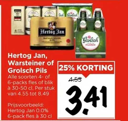 Ben je op zoek naar een verfrissend drankje voor een gezellige avond met vrienden? Kijk dan niet verder! Deze aanbieding is perfect voor iedereen die houdt van kwaliteitsbier. Met de populaire merken Hertog Jan, Warsteiner en Grolsch Pils, is er voor ieder wat wils. Van 14 tot en met 17 mei kun je profiteren van een fantastische korting van 25%! Dit betekent dat je voor slechts €3,41 per stuk een heerlijke 4- of 6-pack kunt bemachtigen.