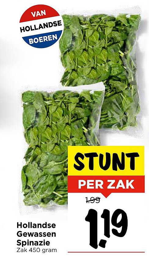 Bekijk nu de Hollandse Gewassen Spinazie aanbieding in de Vomar folder. Deze aanbieding is geldig van 30-04-2025 tot en met 03-05-2025.