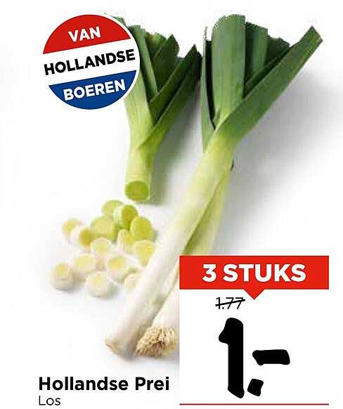 Bekijk de Hollandse Prei aanbieding bij Vomar! Deze fantastische aanbieding is nu beschikbaar in de nieuwste Vomar folder. Profiteer van deze kans en bespaar flink op je aankoop.