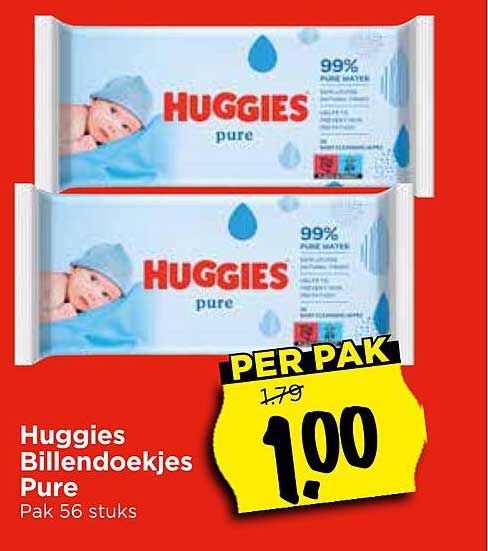 De reguliere prijs van Huggies Billendoekjes Pure bedraagt normaal €1,79, maar in deze aanbieding zijn ze nu verkrijgbaar voor slechts €1,00 per pak. Dit betekent een geweldige besparing van 79 cent per verpakking! Het is een aanbieding die je niet wilt missen, zeker niet als je regelmatig billendoekjes nodig hebt voor de verzorging van je kleintje.
