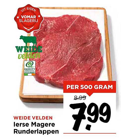 Bekijk nu de Ierse Magere Runderlappen aanbieding in de Vomar folder. Deze aanbieding is geldig van 02-07-2025 tot en met 05-07-2025.