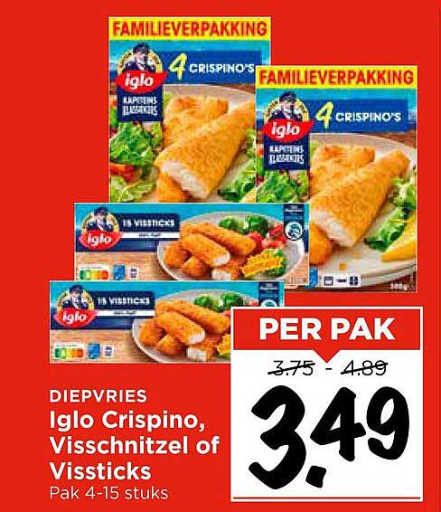 Bekijk nu de Iglo Crispino, Visschnitzel of Vissticks aanbieding in de Vomar folder. Deze aanbieding is geldig van 23-07-2025 tot en met 26-07-2025.