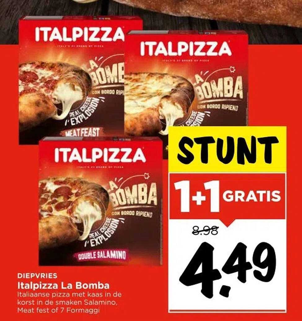 Heb jij ook zo'n zin in een heerlijke pizza? Deze aanbieding van Italpizza La Bomba laat je watertanden! Met authentieke Italiaanse smaken en een onweerstaanbare krokante korst is dit de perfecte keuze voor elke pizzaliefhebber. Denk aan een gezellige avond met vrienden of een snel diner na een drukke werkdag. Wat de reden ook is, met deze aanbieding haal je extra waarde in huis.