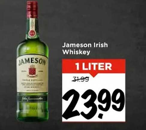 Normaal gesproken betaal je 31,99 euro voor deze 1 liter fles Jameson Irish Whiskey. Met de huidige aanbieding van slechts 23,99 euro bespaar je maar liefst 8 euro. Dit is een uitzonderlijke kans om topkwaliteit whiskey tegen een gereduceerde prijs te kopen. Laat deze kans niet aan je voorbijgaan!