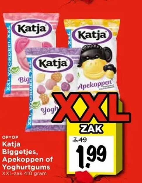 Normaal gesproken betaal je €3,49 voor een zak Katja snoepjes, maar tijdens deze actie krijg je de XXL-zak voor slechts €1,99! Dat is een korting van meer dan 40%! Dit maakt het niet alleen een aanvulling voor je eigen snoepvoorraad, maar ook een leuk cadeau voor vrienden of familie. Mis deze kans niet om je favoriete snoepjes voor een scherpe prijs in huis te halen.