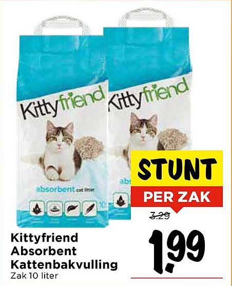 Bekijk nu de Kittyfriend Absorbent Kattenbakvulling aanbieding in de Vomar folder. Deze aanbieding is geldig van 02-10-2025 tot en met 04-10-2025.
