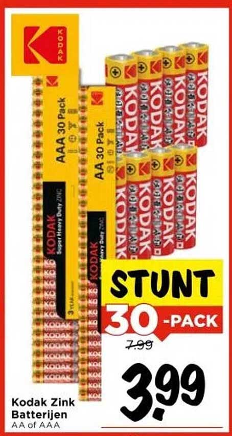 Bekijk nu de Kodak Zink Batterijen 30-Pack aanbieding in de Vomar folder. Deze aanbieding is geldig van 23-10-2025 tot en met 25-10-2025.