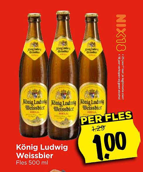 Ben je een liefhebber van heerlijke bieren? Dan mag je deze aanbieding uit de Vomar-folder niet missen! De König Ludwig Weissbier, in een prachtige fles van 500 ml, is nu tijdelijk verkrijgbaar voor een aantrekkelijke prijs. Geniet van de verfijnde smaak en de uitstekende kwaliteit van dit brouwwerk. Perfect voor een gezellige avond met vrienden of om jezelf even te verwennen na een drukke dag.