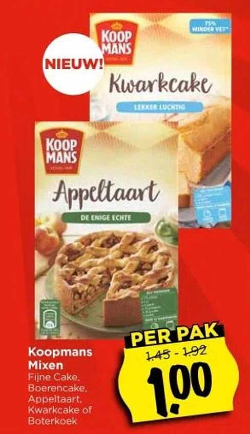 Ontdek de geweldige Koopmans Mixen aanbieding in de nieuwste Vomar folder. Naast deze aanbieding vind je nog veel meer aantrekkelijke kortingen. Je kunt de Koopmans Mixen eenvoudig online bestellen via de Vomar website of kopen in een winkel bij jou in de buurt.