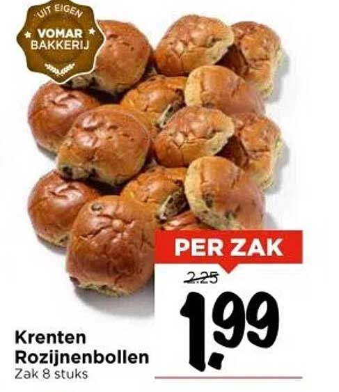Ontdek de geweldige Krenten Rozijnenbollen aanbieding in de nieuwste Vomar folder. Naast deze aanbieding vind je nog veel meer aantrekkelijke kortingen. Je kunt de Krenten Rozijnenbollen eenvoudig online bestellen via de Vomar website of kopen in een winkel bij jou in de buurt.