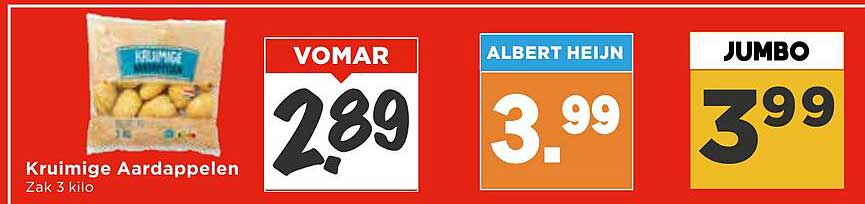 Met een aanbieding van €2,89 bij Vomar kun je deze kruimige aardappelen met gemak vergelijken met andere supermarkten zoals Albert Heijn en Jumbo, waar je al snel €3,99 of meer betaalt. Deze aanbieding biedt je dus een flinke besparing! Niet alleen geniet je van een kwaliteitsproduct, maar je doet dat ook nog eens voor een scherpe prijs.