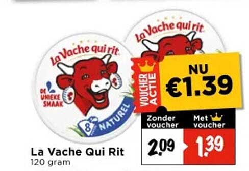Bekijk nu de La Vache Qui Rit 120 gram aanbieding in de Vomar folder. Deze aanbieding is geldig van 13-11-2025 tot en met 15-11-2025.