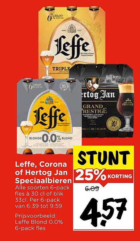 Bekijk nu de Leffe, Corona of Hertog Jan Speciaalbieren aanbieding in de Vomar folder. Deze aanbieding is geldig van 30-10-2025 tot en met 01-11-2025.