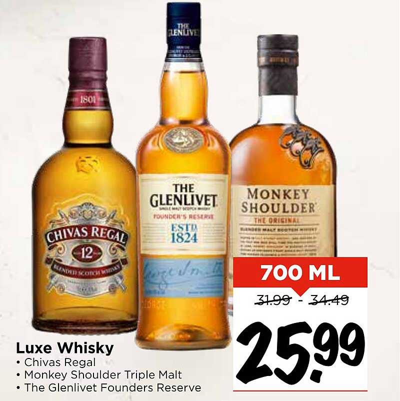 Bekijk de Luxe Whisky aanbieding bij Vomar! Deze fantastische aanbieding is nu beschikbaar in de nieuwste Vomar folder. Profiteer van deze kans en bespaar flink op je aankoop.