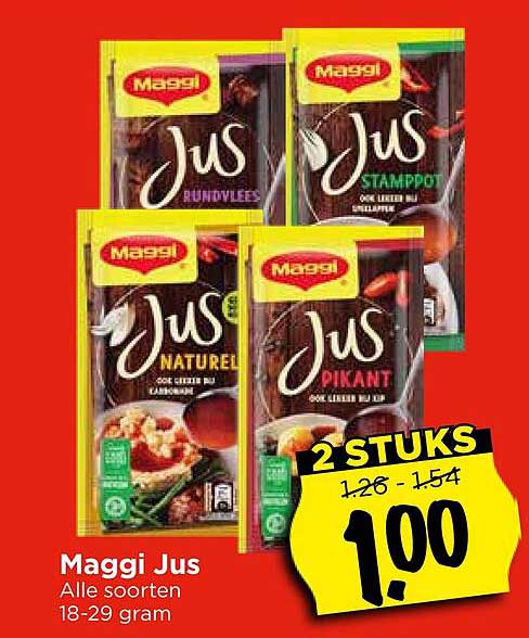 Ontdek de geweldige Maggi Jus aanbieding in de nieuwste Vomar folder. Naast deze aanbieding vind je nog veel meer aantrekkelijke kortingen. Je kunt de Maggi Jus eenvoudig online bestellen via de Vomar website of kopen in een winkel bij jou in de buurt.