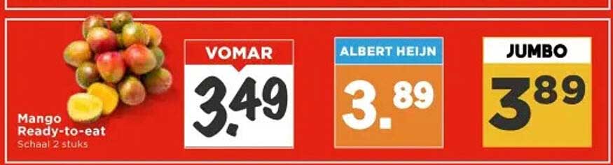 Voor slechts €3,49 geniet je van deze mango's, terwijl andere supermarkten zoals Albert Heijn en Jumbo ze voor €3,89 aanbieden. Dit betekent dat je bij Vomar niet alleen een uitstekende keuze maakt qua kwaliteit, maar ook flink wat geld bespaart. Waarom zou je meer betalen als je bij Vomar diezelfde kwaliteitsmango's voor minder kunt krijgen?