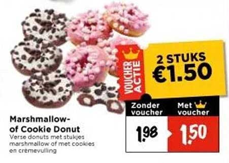Bekijk de Marshmallow- Of Cookie Donut aanbieding bij Vomar! Deze fantastische aanbieding is nu beschikbaar in de nieuwste Vomar folder. Profiteer van deze kans en bespaar flink op je aankoop.
