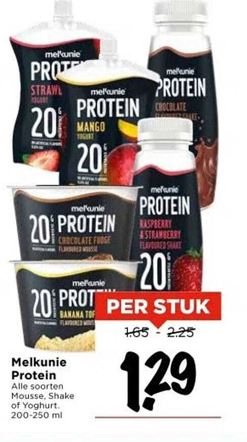 Ben je op zoek naar een lekkere en eiwitrijke snack? Dan is deze aanbieding van Melkunie voor jou ideaal! In de Vomar-folder vind je alle soorten Melkunie Protein, van verfrissende shakes tot romige mousses. Ze zijn perfect voor na het sporten of als gezonde snack gedurende de dag. Met maar liefst 20 gram eiwit per verpakking, zijn deze producten niet alleen lekker, maar ook voedzaam!